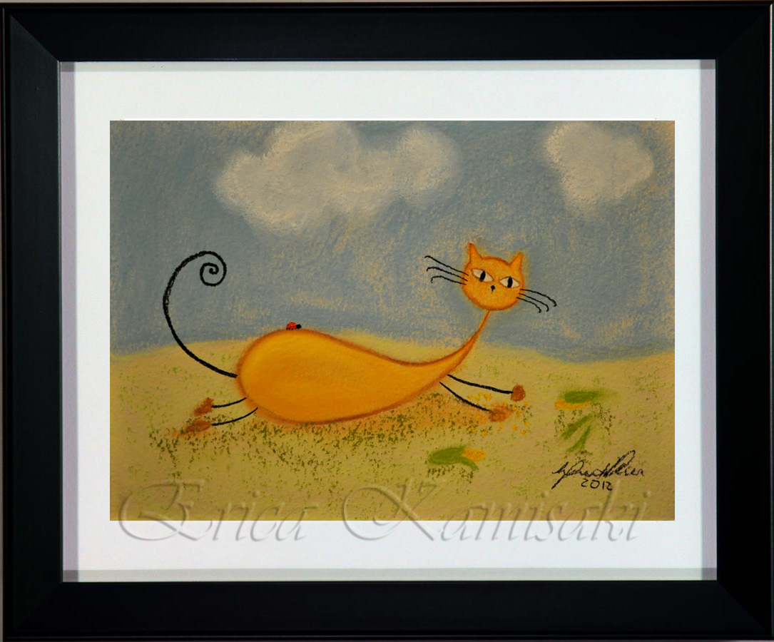 Depois de emoldurada a pintura, não pude resistir à uma brincadeira rss: Lila foi ver se encontrava o gato atrás do quadro.